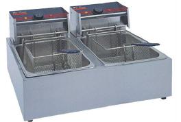 This is a Twin electric 5lt oil fryer, perfect for all size shops and restaurants.It has specially designed inserts for easy removal of oil, its thermostatically controlled and Convenient for processing different product types.